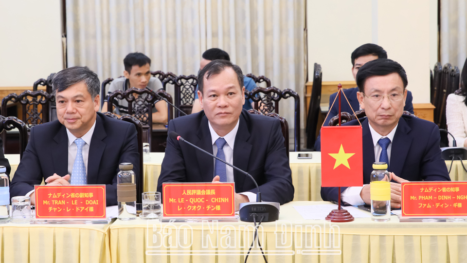 Tiếp và làm việc với Ðoàn, về phía tỉnh Nam Định có các đồng chí: Lê Quốc Chỉnh, Phó Bí thư Thường trực Tỉnh ủy, Chủ tịch HĐND tỉnh, Trưởng đoàn Đoàn đại biểu Quốc hội tỉnh; Phạm Đình Nghị, Phó Bí thư Tỉnh ủy, Chủ tịch UBND tỉnh; Trần Anh Dũng, Uỷ viên Ban TVTU, Phó Chủ tịch Thường trực UBND tỉnh; Trần Lê Đoài, TUV, Phó Chủ tịch UBND tỉnh; lãnh đạo các sở, ngành: Kế hoạch và Đầu tư, Nông nghiệp và Phát triển nông thôn, Lao động - Thương binh và Xã hội, Tài nguyên và Môi trường, Văn phòng Tỉnh uỷ, Văn phòng UBND tỉnh; Giám đốc Công ty TNHH Toản Xuân và Công ty TNHH Thuỷ sản Lenger Việt Nam. Cùng dự buổi làm việc còn có đại diện Bộ Ngoại giao, Tổng lãnh sự Việt Nam tại Fukuoka (Nhật Bản).