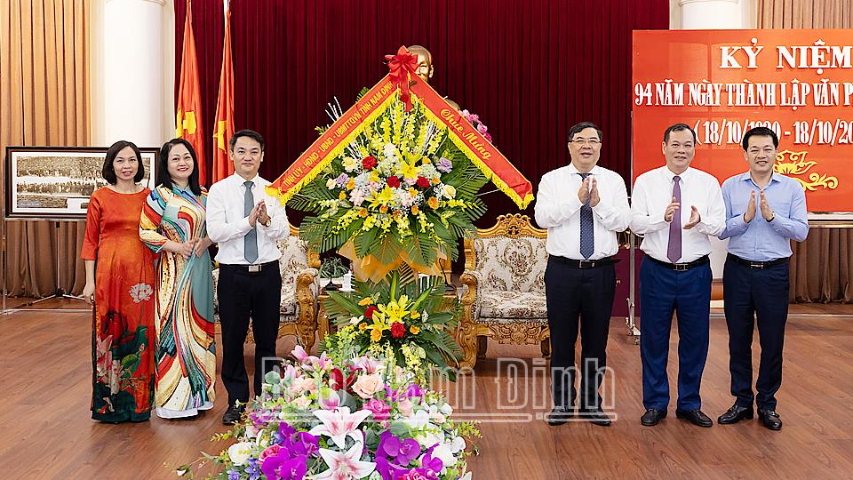 | Đồng chí Bí thư Tỉnh uỷ Phạm Gia Túc và đồng chí Phó Bí thư Thường trực Tỉnh ủy Lê Quốc Chỉnh tặng hoa chúc mừng Văn phòng Tỉnh ủy. |