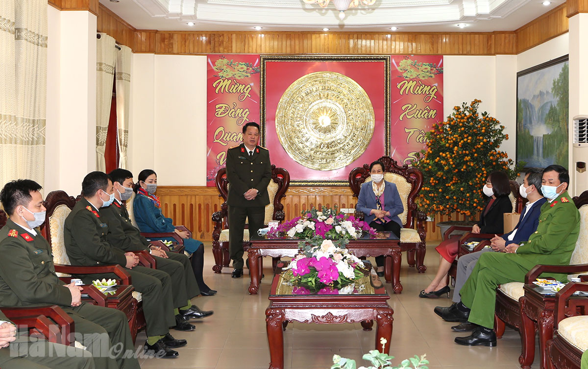 Trong không khí ấm áp của ngày Xuân, gửi lời chúc mừng năm mới tốt đẹp nhất tới toàn thể cán bộ, chiến sĩ Công an tỉnh Hà Nam, đồng chí Bí thư Tỉnh ủy đánh giá cao những thành tích, chiến công xuất sắc mà lực lượng Công an tỉnh đã đạt được trong thời gian qua. Đồng chí Bí thư Tỉnh ủy đề nghị toàn lực lượng công an tỉnh phát huy kết quả, khí thế ngay những ngày đầu năm mới trên tất cả các lĩnh vực công tác. Tiếp tục tăng cường giáo dục chính trị tư tưởng cho cán bộ, chiến sĩ, siết chặt kỷ luật, kỷ cương, điều lệnh, xây dựng lực lượng ngày càng trong sạch, vững mạnh. Trước mắt, chủ động triển khai thực hiện tốt các biện pháp phòng, chống dịch Covid-19 trong cán bộ, chiến sĩ và cộng đồng; tiếp tục thực hiện hiệu quả đợt cao điểm tấn công trấn áp tội phạm, bảo đảm ANTT trên địa bàn, phục vụ tốt nhiệm vụ phát triển kinh tế - xã hội của địa phương.
