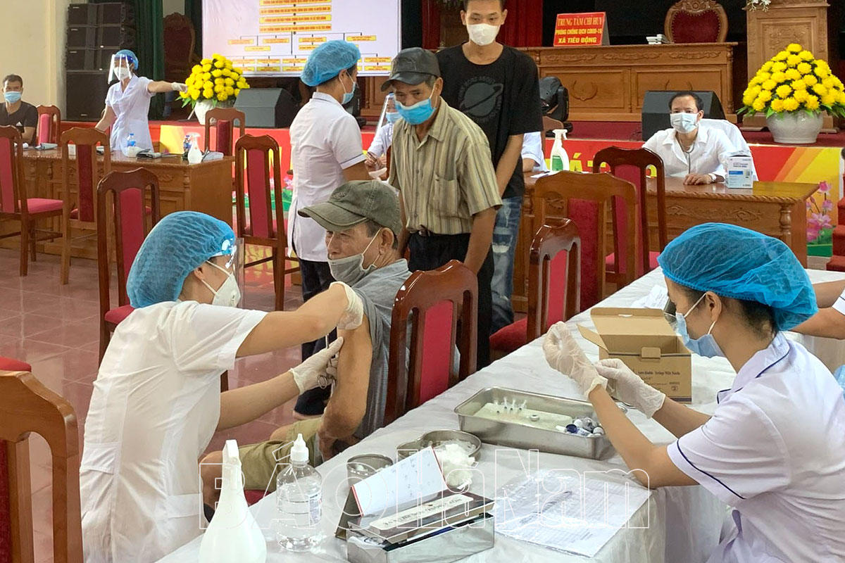 Tiêm vắc xin phòng Covid-19 ở xã Tiêu Động, huyện Bình Lục.