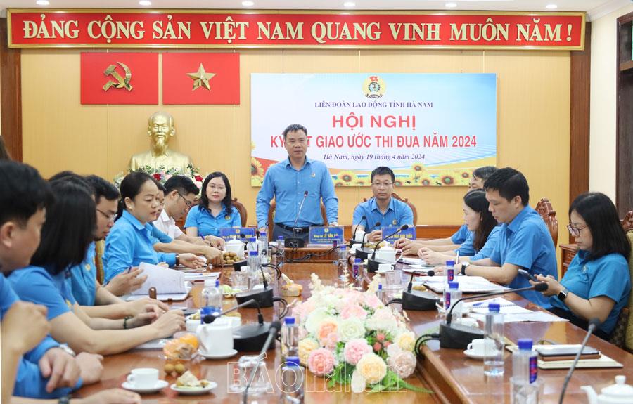 Chiều 19/4, tại huyện Lý Nhân, Ban Thường vụ Liên đoàn Lao động (LĐLĐ) tỉnh tổ chức hội nghị Ký kết giao ước thi đua giữa các khối thi đua trực thuộc LĐLĐ tỉnh năm 2024.