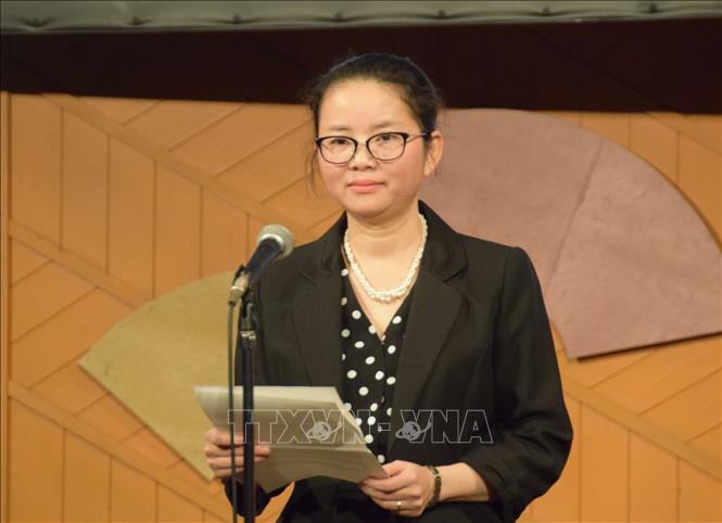 Tham tán Trần Thị Thu Thìn, đại diện Đại sứ quán Việt Nam tại Nhật Bản, phát biểu tại hội thảo.