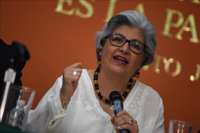 Bộ trưởng Kinh tế Mexico Graciela Márquez Colín phát biểu tại một cuộc họp báo ở Washington, DC, Mỹ. Ảnh: AFP/TTXVN