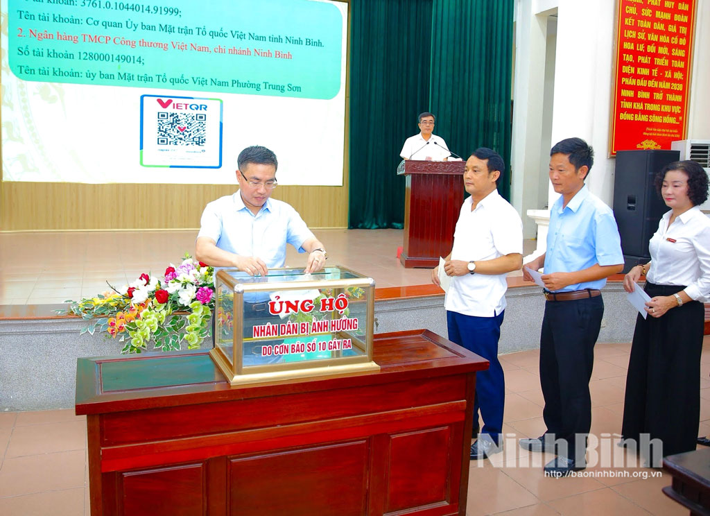 Hưởng ứng lời kêu gọi của Đoàn Chủ tịch Ủy ban Trung ương MTTQ Việt Nam và Ủy ban MTTQ Việt Nam tỉnh Ninh Bình về việc vận động ủng hộ đồng bào khắc phục thiệt hại do bão, lũ gây ra, ngày 14/10, Đảng ủy, HĐND, UBND, Ủy ban MTTQ Việt Nam các phường Trung Sơn, Tam Điệp đã tổ chức Lễ phát động ủng hộ đồng bào bị ảnh hưởng bởi thiên tai.