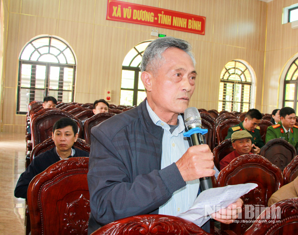 Cử tri xã Vũ Dương đồng tình cao với chương trình hành động của các ứng cử viên; bày tỏ sự tin tưởng và mong đợi các ứng cử viên khi được bầu làm đại biểu HĐND tỉnh nhiệm kỳ 2026- 2031 sẽ thực hiện đúng chương trình hành động của mình, đáp ứng sự kỳ vọng của cử tri và Nhân dân. Cử tri đề nghị các đại biểu quan tâm đến các vấn đề: Chế độ chính sách an sinh xã hội, thuế đất, sử dụng đất do nhà nước quản lý, tình hình an ninh trật tự, an toàn giao thông tại địa phương, chế độ phụ cấp cho cán bộ không chuyên trách tại các thôn xóm, vệ sinh môi trường tại các làng nghề, bảo vệ quyền và lợi ích hợp pháp cho nhân dân; tiếp tục quan tâm đến sản xuất nông nghiệp, ổn định đầu vào, có cơ chế đầu ra sản phẩm cho nông dân, có chính sách hỗ trợ về sản xuất nông nghiệp, đẩy mạnh khoa học kỹ thuật, đầu tư cho kênh mương, đường nội đồng, tạo điều kiện cho nông nghiệp phát triển; quan tâm đến các vấn đề phát sinh từ các làng nghề, có biện pháp xử lý rác thải sinh hoạt cho nhân dân.