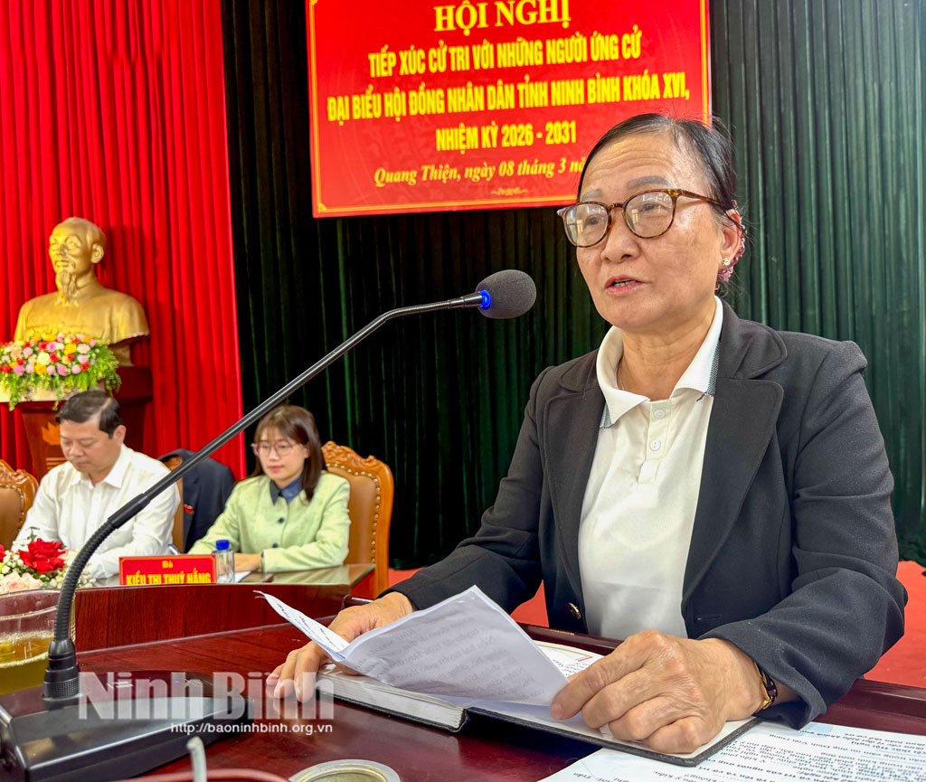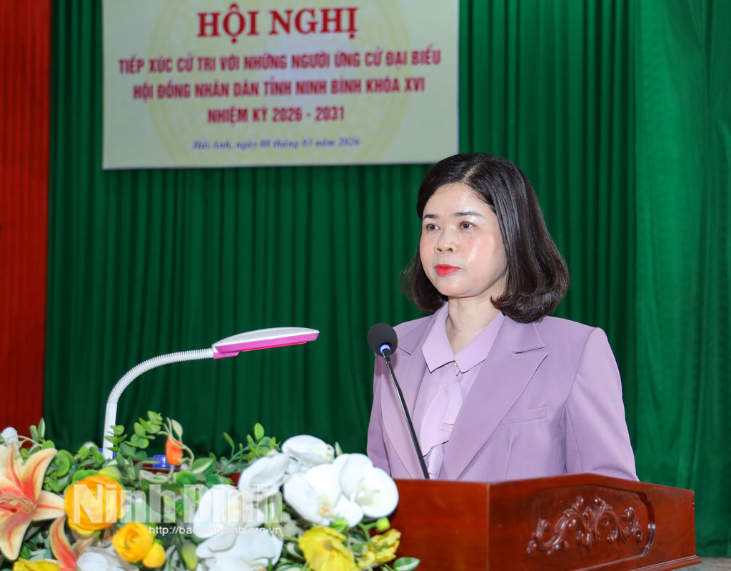 Các ứng cử viên nhấn mạnh, nếu được cử tri tín nhiệm bầu làm đại biểu HĐND tỉnh nhiệm kỳ 2026-2031, sẽ kịp thời phản ánh, đề xuất giải quyết những vấn đề liên quan đến phát triển kinh tế - xã hội của địa phương. Trong đó, tập trung vào các công trình, dự án trọng điểm; đẩy mạnh chuyển đổi số, phát triển khoa học - công nghệ; thúc đẩy giáo dục và du lịch theo hướng bền vững. Quan tâm hơn nữa đến công tác bảo đảm an sinh xã hội; giữ vững quốc phòng - an ninh; bảo đảm trật tự an toàn xã hội trên địa bàn. Qua đó, góp phần cùng tỉnh Ninh Bình thực hiện thắng lợi mục tiêu phấn đấu đến năm 2030 trở thành thành phố trực thuộc Trung ương.