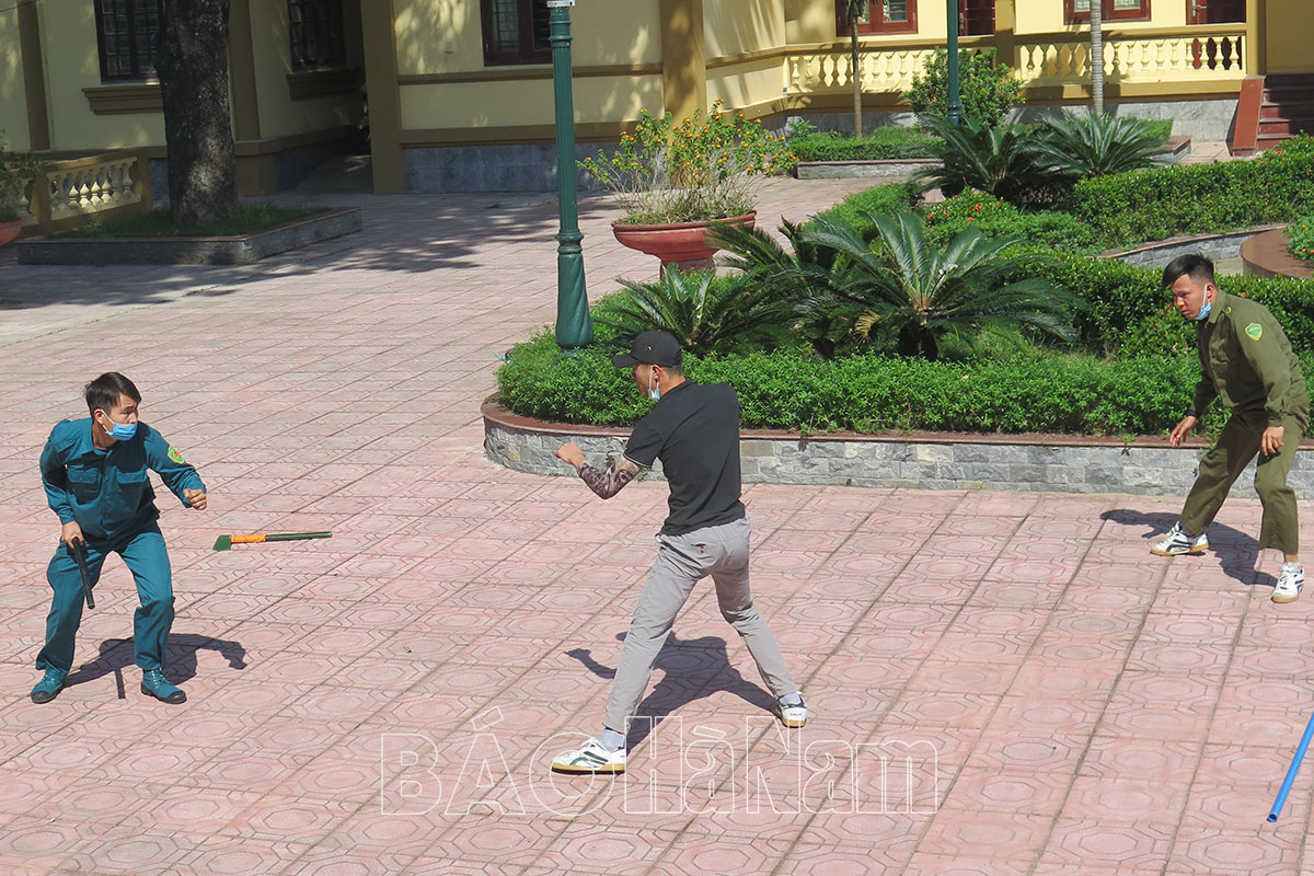 Một tình huống trong diễn tập thực binh ở xã Thi Sơn (LLVT xã phối hợp với công an thực hành giải thoát con tin).