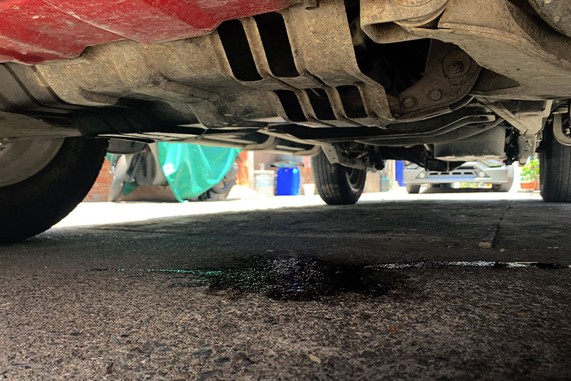 Dùng đèn pin quét khoang động cơ xem có dấu hiệu rò rỉ chất lỏng nào không. Các vị trí rò rỉ thường gặp bao gồm xung quanh gioăng đệm nắp van, miếng đệm cát-te, đáy hộp số và xung quanh các ống tản nhiệt.