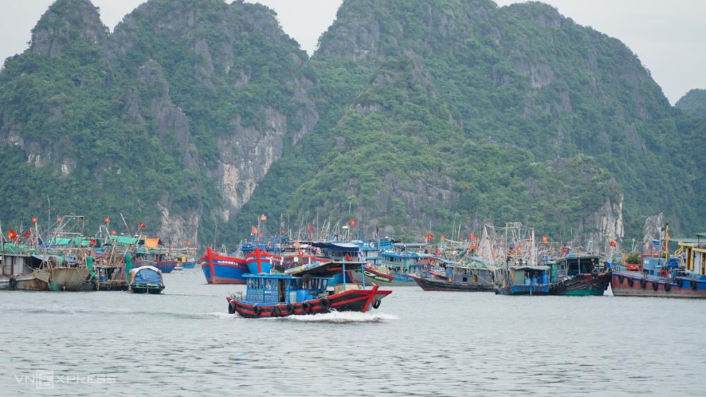 Tàu thuyền trên vịnh Hạ Long, gồm cả tàu cá và tàu du lịch, đều đã về bờ tránh bão. Ảnh: Lê Tân