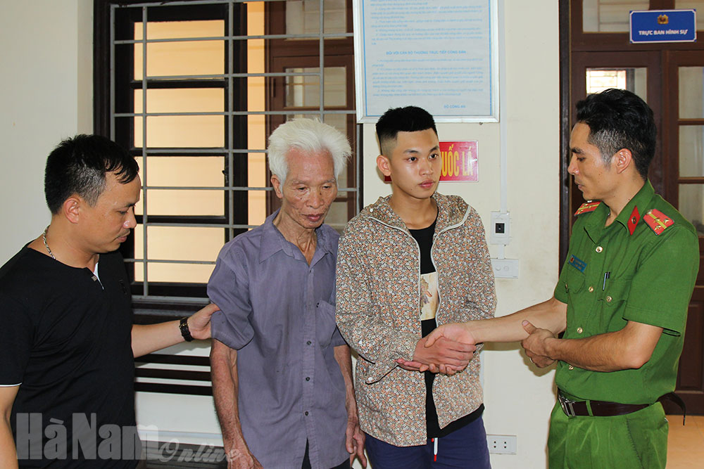 Qua thăm hỏi, lực lượng Công an biết được ông là Nguyễn Xuân Hòe (SN 1930), trú ở tổ 7, phường Quang Trung, TP. Phủ Lý, đồng thời liên lạc với gia đình đến đón người thân.
