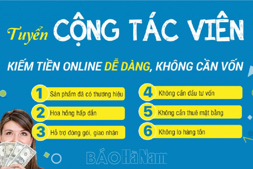Thời gian qua, trên địa bàn cả nước nói chung, địa bàn tỉnh Hà Nam nói riêng, không ít người đã bị lừa đảo, chiếm đoạt tài sản bằng thủ đoạn tuyển cộng tác viên online với mức lương “hấp dẫn”. Thủ đoạn của các đối tượng là sử dụng mạng xã hội Zalo, Facebook, Viber... để chạy quảng cáo với nội dung như "Tuyển cộng tác viên mua bán hàng trên các sàn thương mại điện tử Shopee, Lazada, Tiki…" và đăng tin tuyển dụng cộng tác viên làm việc online với tỷ lệ hoa hồng lớn. Do tâm lý muốn có công việc nhẹ nhàng, thu nhập cao, không ít người đã trở thành nạn nhân của các thủ đoạn này với số tiền bị chiếm đoạt lên tới hàng trăm triệu đồng.