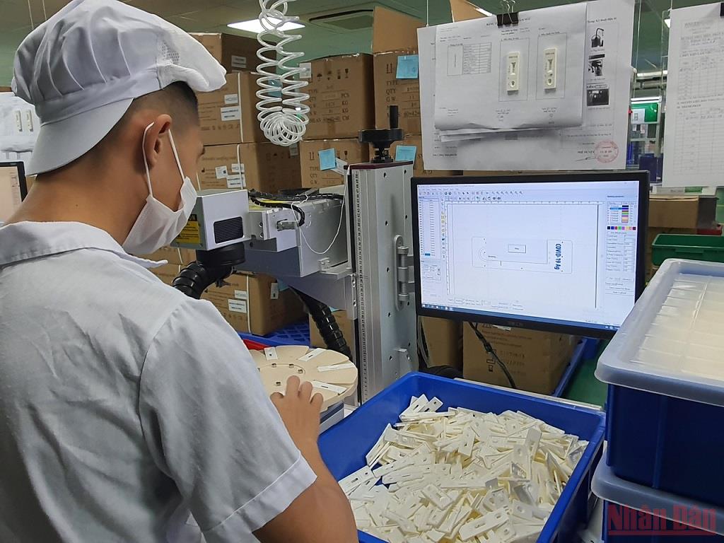 Một góc trong dây chuyền sản xuất kit test kháng nguyên virus SARS-CoV-2 của Công ty TNHH Medicon. Ảnh chụp ngày 19/12.