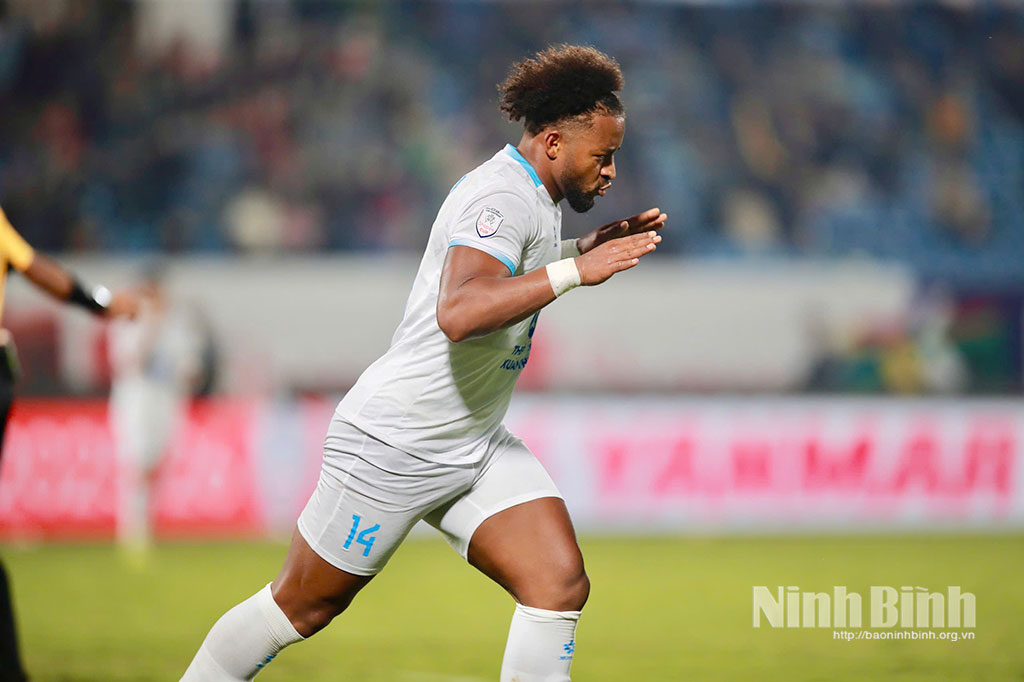 Nguyễn Xuân Son ăn mừng khi ghi bàn thắng thứ 2 cho Câu lạc bộ Thép Xanh Nam Định.