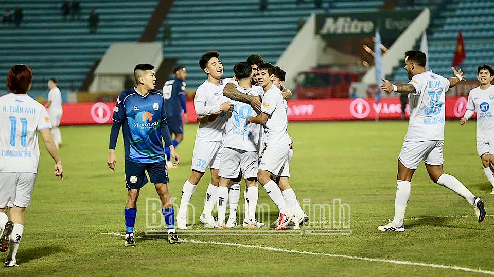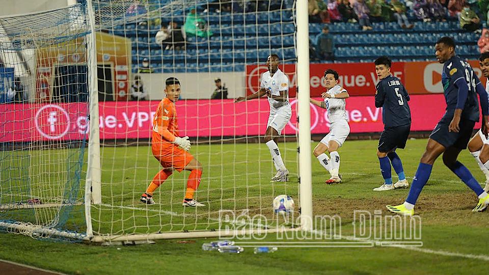 | Tình huống ghi bàn nâng tỷ số lên 2-1 của cầu thủ Dương Thanh Hào bên phía Nam Định. |
