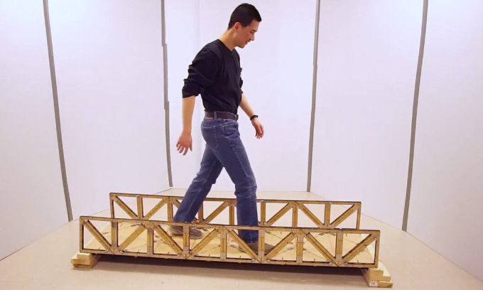 Kỹ sư Evgueni T. Filipov cho biết, nhiều hệ thống origami hiện nay đang thiếu tính đồng nhất về độ dày. "Khi đạt được điều đó, kết hợp với những thiết bị chốt khóa thích hợp, trọng lượng đặt lên có thể được phân bố đều khắp cấu trúc", ông nói. Trong nghiên cứu mới, nhóm kỹ sư trình bày cách họ biến các tấm ván sợi chịu lực thành cầu đi bộ dài 4 m, trạm xe buýt cao 2 m và cột cao 4 m.