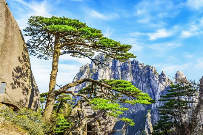Năm 1990, UNESCO công nhận Hoàng Sơn là Di sản Thiên nhiên Thế giới nhờ vẻ đẹp tự nhiên khác thường. Trong đó, một trong những thứ hút khách nhất tại dãy núi này phải nhắc tới "cây thông đón khách" (Greeting Pine) có tuổi đời khoảng 1.000 năm.