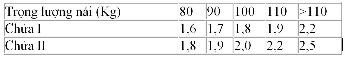 - Mức ăn cho lợn nái có chửa (Kg thức ăn đã phối trộn/con/ngày)