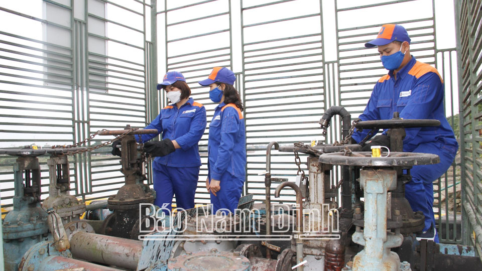 | Nhân viên Công ty Xăng dầu Hà Nam Ninh kiểm tra kỹ thuật vận hành cung ứng xăng dầu. Ảnh: Nguyễn Hương |