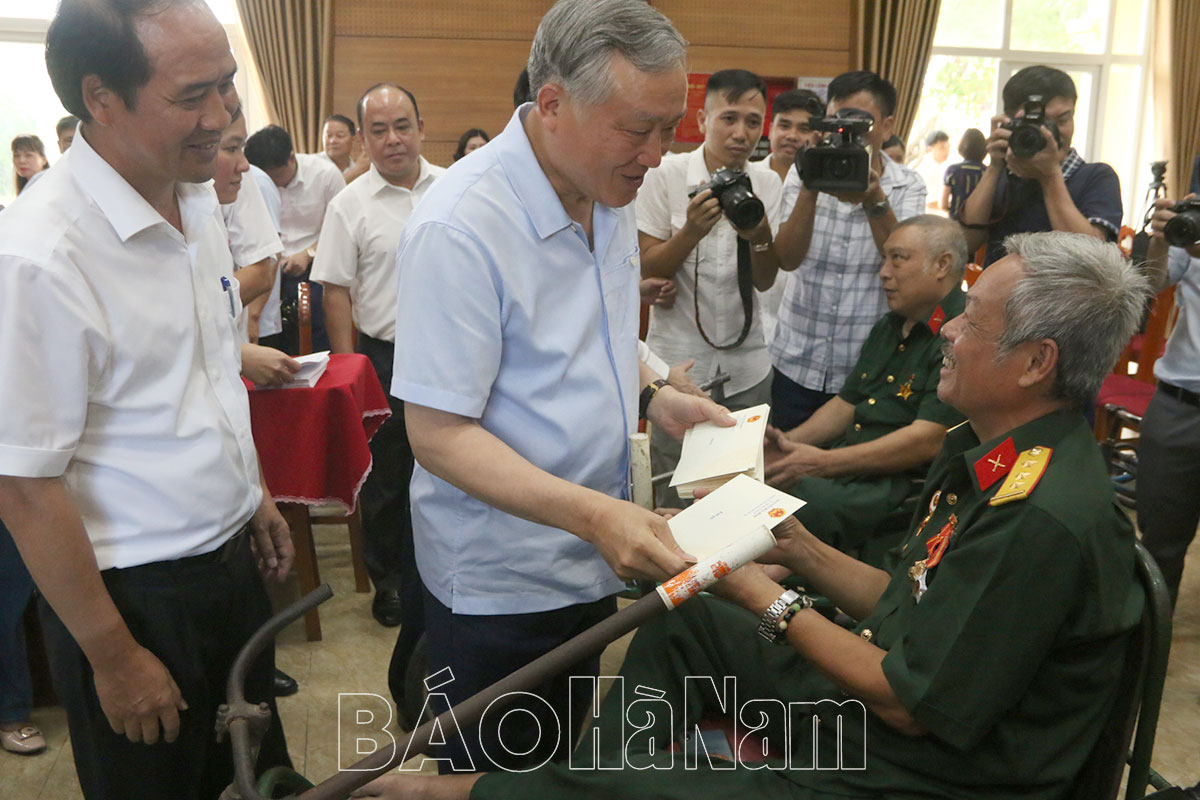 Chiều cùng ngày, đồng chí Nguyễn Hòa Bình, Ủy viên Bộ Chính trị, Bí thư Trung ương Đảng, Chánh án Tòa án Nhân dân tối cao cùng đoàn công tác đã đến thăm, tặng quà thương binh Nguyễn Quốc Hợp, thôn Nhất Nhì, xã Liêm Cần (Thanh Liêm); gia đình bà Nguyễn Thị Hương, thân nhân liệt sĩ; thương binh Vũ Văn Quyết cùng ở thôn Ngũ Cõi, xã Liêm Cần (Thanh Liêm); thăm, tặng quà lão thành cách mạng Đinh Công Long ở Tổ dân phố Bảo Lộc 2 – phường Thanh Châu (thành phố Phủ Lý). Tại các nơi đến thăm, đồng chí Nguyễn Hòa Bình quan tâm thăm hỏi sức khỏe, đời sống của các thương binh và thân nhân NCC. Đồng chí mong các thương binh và thân nhân gia đình NCC giữ gìn sức khỏe, tiếp tục giáo dục con cháu phát huy truyền thống cách mạng, tích cực góp phần xây dựng quê hương Hà Nam nói riêng và đất nước ngày càng giàu mạnh.