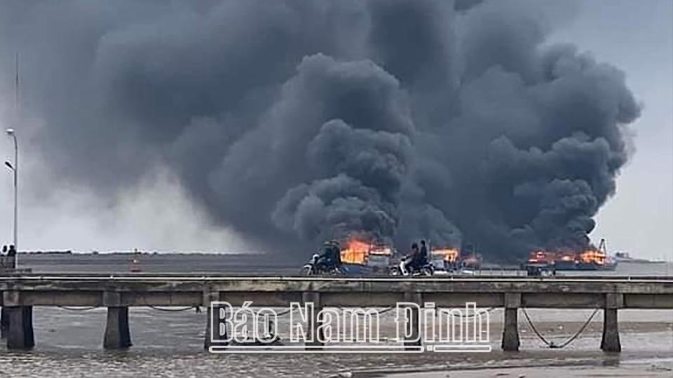 Theo lãnh đạo UBND xã Phúc Thắng (Nghĩa Hưng), khoảng 13 giờ ngày 16-1, tại khu neo đậu tàu thuyền gần cửa cống Quần Vinh 1, xã Phúc Thắng, người dân phát hiện ngọn lửa bốc lên từ một con tàu đậu ở mép sông sau đó lan sang 5 tàu liền kề làm cả 6 tàu bị cháy.