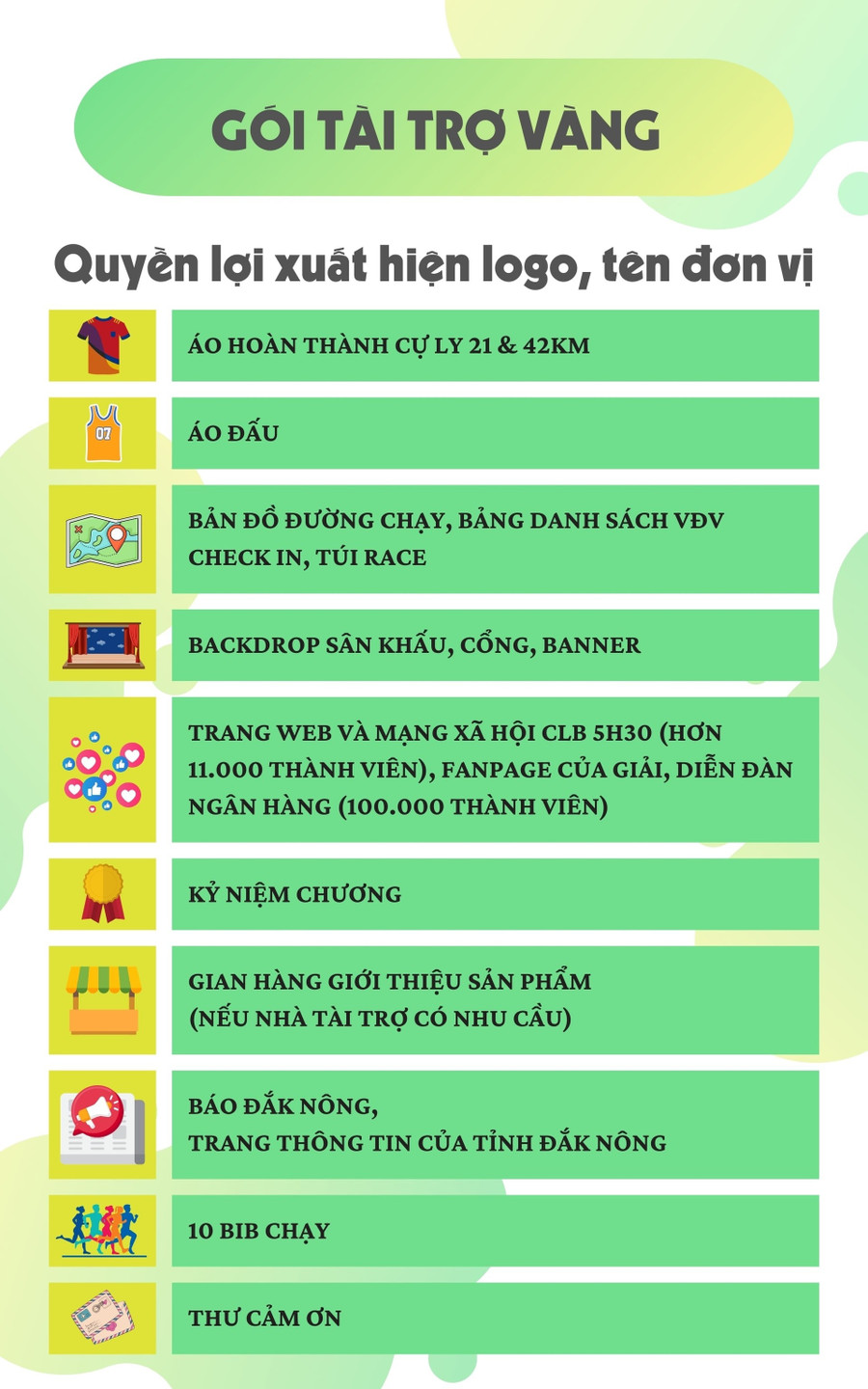 Đồng hành cùng Đắk Nông Marathon 2025 – Chinh phục Nam Tây Nguyên, các nhà tài trợ không chỉ góp phần tạo nên một sự kiện thể thao quy mô lớn, mà còn lan tỏa tinh thần rèn luyện sức khỏe, quảng bá hình ảnh doanh nghiệp và chung tay vì cộng đồng.