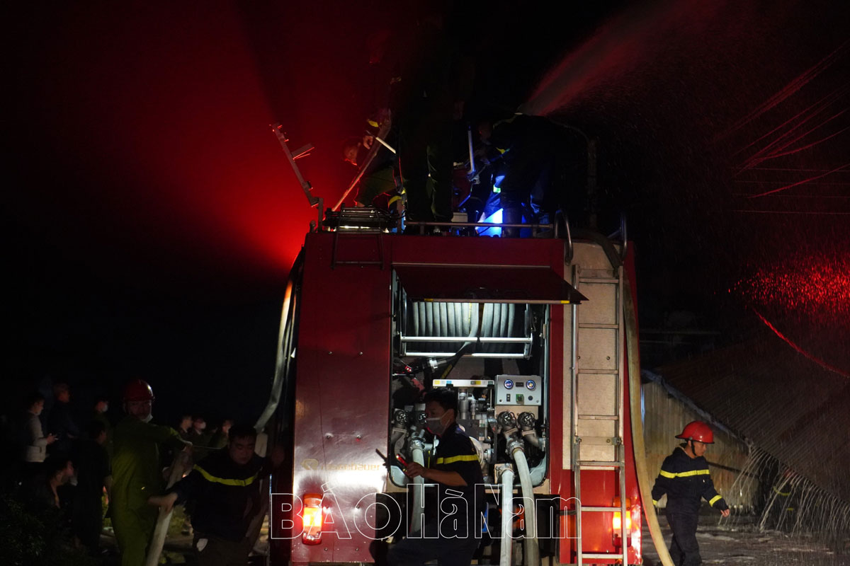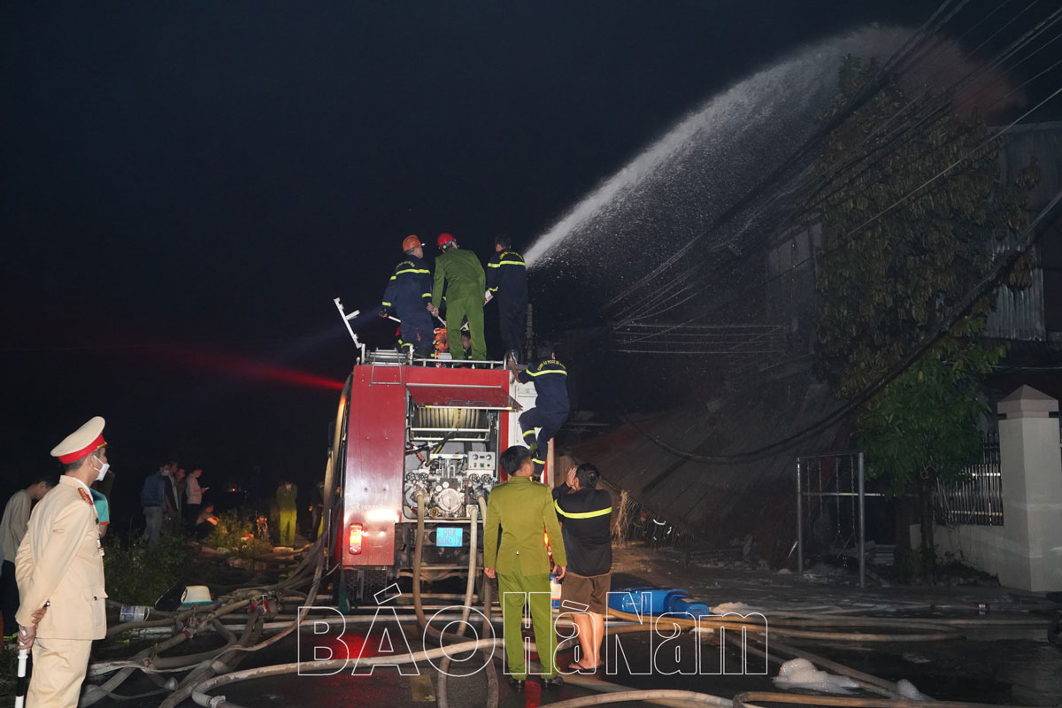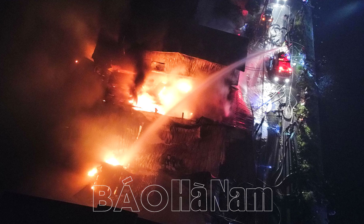 Đêm 16/12, tại thôn Lạc Nhuế, xã Đồng Hóa, huyện Kim Bảng bất ngờ xảy ra vụ cháy tại khu nhà xưởng sản xuất. Đám cháy nhanh chóng lan rộng, cột khói bốc cao ngùn ngụt hàng chục mét, đe dọa cháy lan sang nhiều khu vực xung quanh.