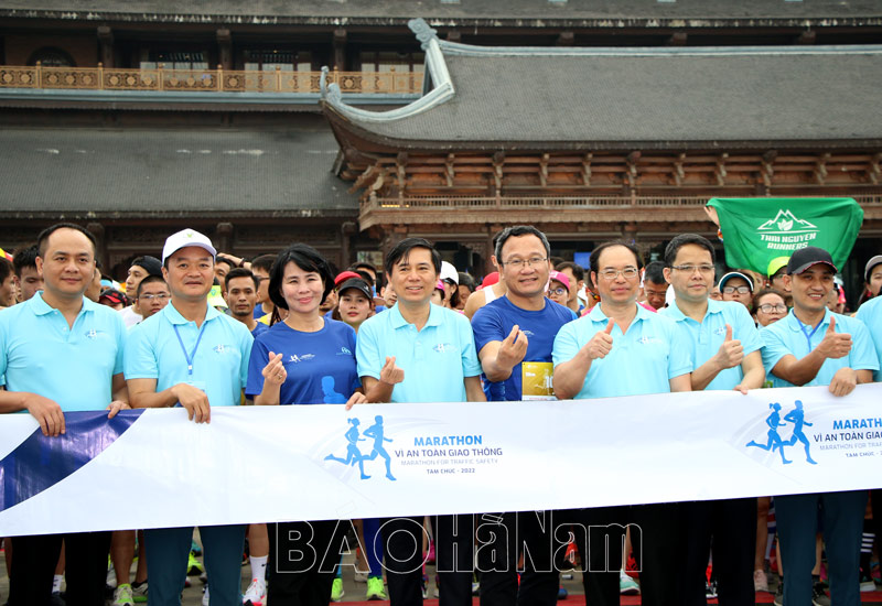 Lãnh đạo tỉnh Hà Nam và các cơ quan Trung ương tham gia tổ chức Giải Marathon "Vì an toàn giao thông" năm 2022 trước giờ chạy hưởng ứng Giải