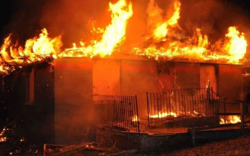 Đám cháy bùng phát dữ dội vào sáng sớm.