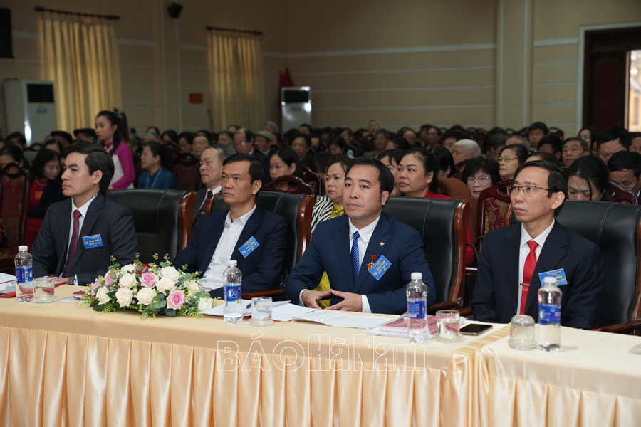 Lãnh đạo Ban Tổ chức Thành ủy Phủ Lý tặng hoa chúc mừng đại hội.Đảng ủy, HĐND, UBND, Ủy ban MTTQ phường Châu Cầu tặng hoa chúc mừng đại hội.