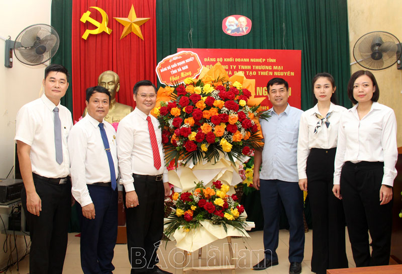 Đại diện Ban Thường vụ Đảng ủy Khối Doanh nghiệp tỉnh tặng hoa chúc mừng chi bộ và các đảng viên mới.