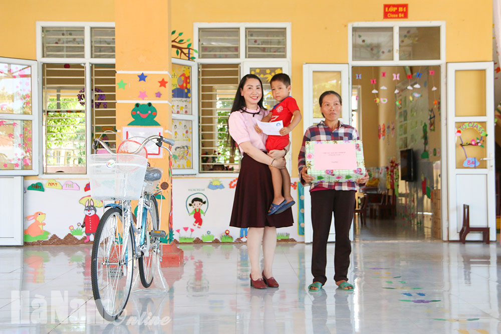 Sáng cùng ngày, Chi cục Dân số - KHHGĐ tỉnh phối hợp với Trường Đại học Y Hà Nội tổ chức trao quà cho các cháu có hoàn cảnh khó khăn tại các trường mầm non ở xã Bắc Lý, Chân Lý (Lý Nhân).