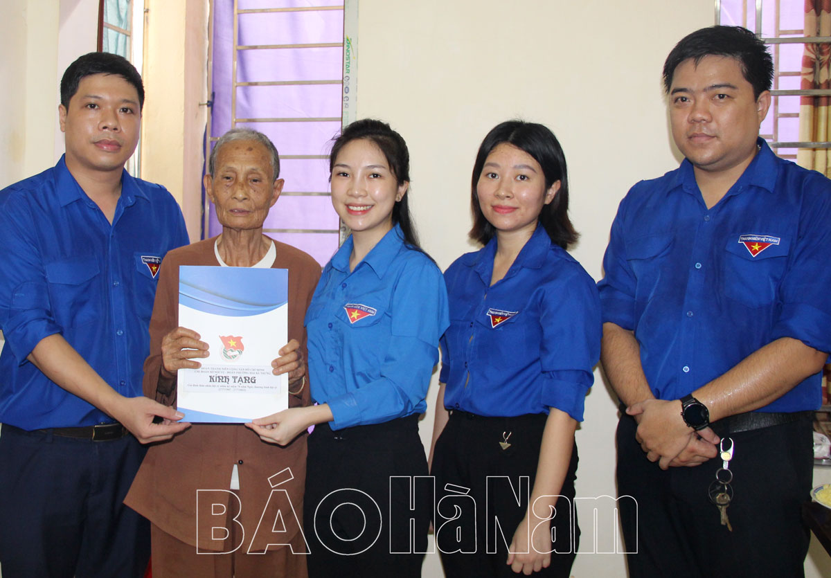 Chi đoàn Sở Nội vụ, ĐTN phường Hai Bà Trưng thăm hỏi, tặng quà thân nhân liệt sĩ.
