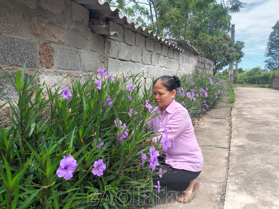 Bà Trương Thị Kim Chung gương mẫu đi đầu trong chăm sóc đường hoa.