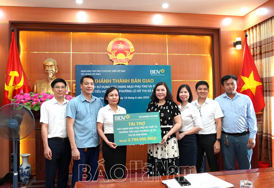 Chiều 18/6, Chi nhánh Ngân hàng Thương mại cổ phần Đầu tư và Phát triển (BIDV) Hà Nam đã trao tài trợ an sinh xã hội với tổng kinh phí gần 4,6 tỷ đồng cho Trường Tiểu học và Trường THCS Lê Hồ, thị xã Kim Bảng.