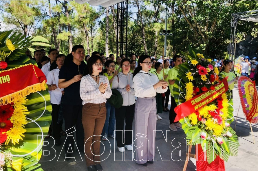 Tập thể cán bộ, nhân viên Chi nhánh NHCSXH Hà Nam dâng hương tưởng nhớ các Anh hùng liệt sỹ tại Nghĩa trang liệt sỹ Quốc gia Trường Sơn.
