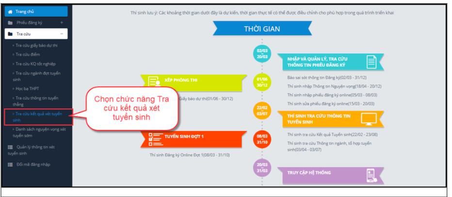 Thí sinh tra cứu kết quả xét tuyển sinh từ menu Tra cứu
