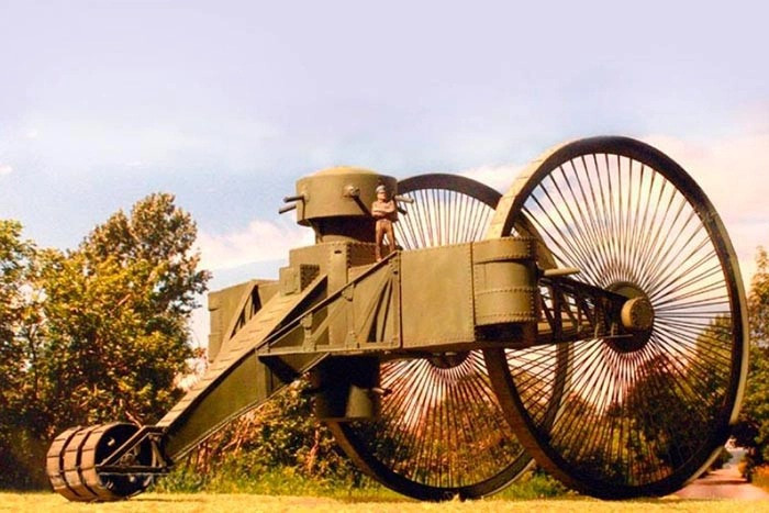 Với thiết kế giống một chiếc xe ba bánh, trong đó hai bánh có kích thước khổng lồ, xe tăng Sa hoàng (Tsar-Tank) là cỗ thiết giáp có hình dáng kỳ lạ nhất trong lịch sử quân sự thời Cận đại.