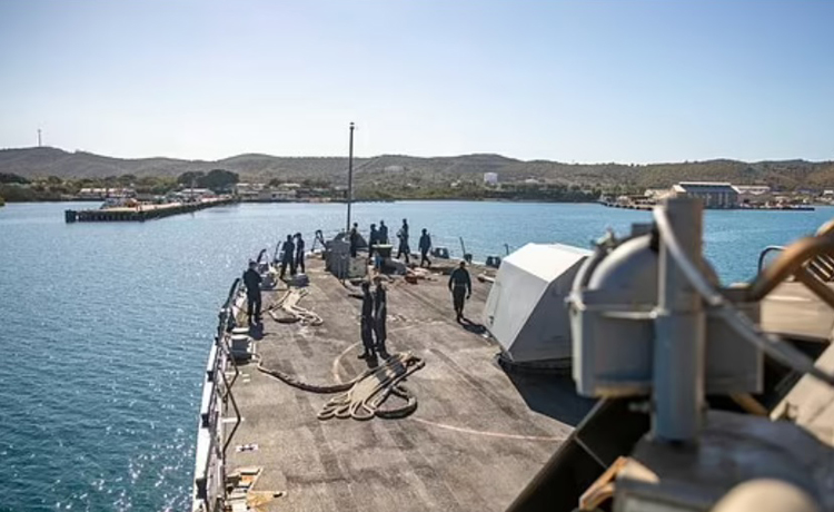 Chú thích ảnh USS Milwaukee đang dừng chân tại căn cứ Hải quân Vịnh Guantanamo. Ảnh: Daily Mail Hải quân Mỹ tối 24/12 xác nhận chưa thể xác định chính xác loại biến thể của virus SARS-CoV-2 hiện diện trên USS Milwaukee và nhấn mạnh rằng đa thực hiện theo mọi hướng dẫn của Trung tâm Kiểm soát và Phòng ngừa dịch bệnh Mỹ (CDC) bao gồm “truy vết và xét nghiệm”.