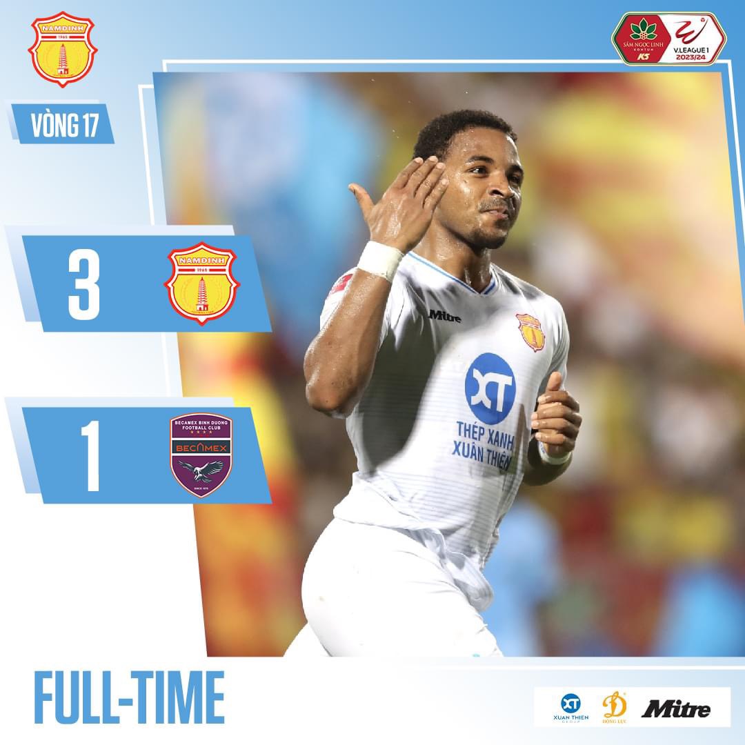 Vào lúc 18h00 ngày 8-5, trên SVĐ Thiên Trường (thành phố Nam Định) đã diễn ra trận đấu thuộc vòng 17 Giải Bóng đá vô địch quốc gia - Night Wolf (V-League) 2023-2024 giữa CLB Thép Xanh Nam Định (TXNĐ) gặp CLB Becamex Bình Dương.