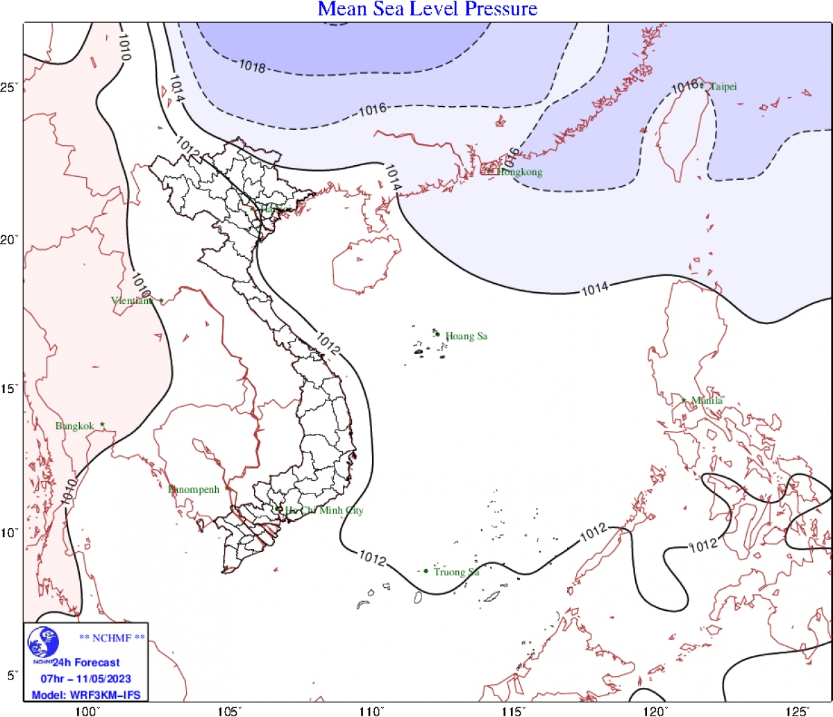 Dự báo chiều và đêm 11/5 trên đất liền, bộ phận không khí lạnh này sẽ ảnh hưởng đến khu vực phía Đông Bắc Bộ, sau đó ảnh hưởng đến một số nơi ở phía Tây Bắc Bộ và Bắc Trung Bộ. Từ chiều nay gió chuyển hướng Đông Bắc, trong đất liền mạnh dần lên cấp 2-3; vùng ven biển cấp 3.