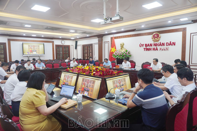 Tại điểm cầu Hà Nam, đồng chí Nguyễn Đức Vượng, TUV, Phó Chủ tịch UBND tỉnh chủ trì hội nghị. Tham dự hội nghị có các đồng chí lãnh đạo các sở, ban, ngành; lãnh đạo UBND các huyện, thị xã, thành phố.