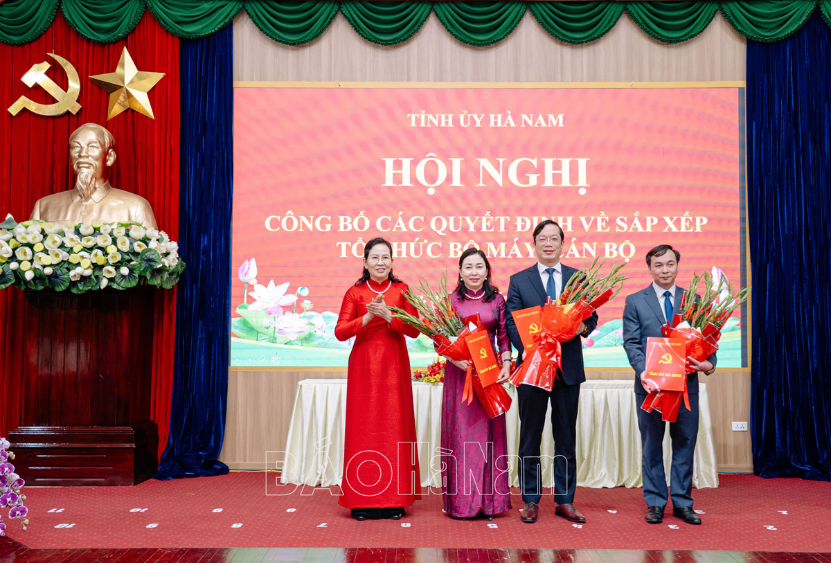 Theo đó, kể từ ngày 06/2/2025, Tỉnh ủy Hà Nam kết thúc hoạt động đối với 2 Đảng bộ trực thuộc là Đảng bộ Khối các cơ quan tỉnh và Đảng bộ Khối Doanh nghiệp tỉnh; kết thúc hoạt động đối với Ban Bảo vệ chăm sóc sức khỏe cán bộ tỉnh, chuyển chức năng, nhiệm vụ về Ban Tổ chức Tỉnh ủy và Sở Y tế; quyết định hợp nhất Ban Tuyên giáo và Ban Dân vận Tỉnh ủy thành Ban Tuyên giáo và Dân vận Tỉnh ủy; kết thúc hoạt động của nhiều đảng đoàn, ban cán sự đảng cấp tỉnh để thành lập 2 Đảng bộ mới trực thuộc Tỉnh ủy, gồm: Đảng bộ các cơ quan Đảng tỉnh và Đảng bộ UBND tỉnh.