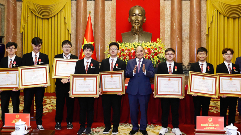 | Chủ tịch nước Nguyễn Xuân Phúc trao tặng Huân chương Lao động hạng Nhì và hạng Ba cho học sinh đoạt giải các cuộc thi Olympic và Khoa học kỹ thuật quốc tế năm 2022.