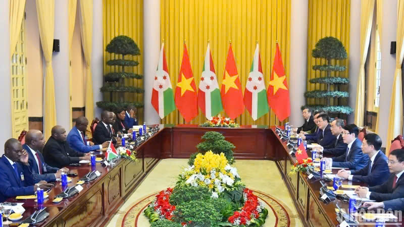Khẳng định dù cách xa nhau về địa lý, nhân dân hai nước luôn đoàn kết, dành cho nhau những tình cảm nồng ấm, hữu nghị và ủng hộ lẫn nhau, Tổng thống Evariste Ndayishimiye thông tin với Chủ tịch nước về thành tựu kinh tế-xã hội, vai trò và những đóng góp của Burundi tại các tổ chức khu vực; nhấn mạnh chuyến thăm lần này nhằm khẳng định quyết tâm của Nhà nước và Chính phủ Burundi trong việc củng cố và phát triển quan hệ hữu nghị và hợp tác với Việt Nam trong các lĩnh vực đầu tư, nông nghiệp, khai khoáng, khoa học công nghệ, chuyển đổi số...; mong muốn hai nước xem xét việc mở cơ quan đại diện ngoại giao thường trú tại mỗi nước.