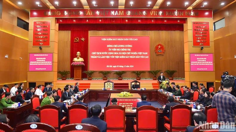 | Chủ tịch nước Lương Cường làm việc với Viện Kiểm sát nhân dân tối cao. |