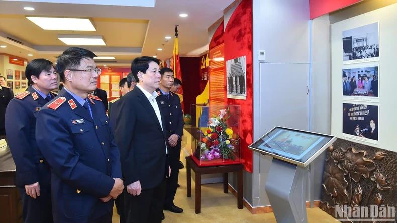 | Chủ tịch nước tham quan Phòng truyền thống Viện Kiểm sát nhân dân tối cao. |