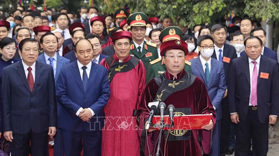 Kính cẩn trước anh linh các bậc tiền nhân đã có công dựng nước và giữ nước, thay mặt toàn thể đồng chí, đồng bào cả nước và kiều bào ta ở nước ngoài, Chủ tịch nước Nguyễn Xuân Phúc cùng lãnh đạo Đảng, Nhà nước, ban, bộ, ngành Trung ương và tỉnh Phú Thọ đã thành kính dâng hương, hoa, lễ vật tưởng nhớ, tri ân công đức các Vua Hùng đã có công dựng nước và cầu cho quốc thái dân an, bách gia trăm họ vạn đại trường tồn, đất nước ngày càng thịnh vượng, hùng cường.