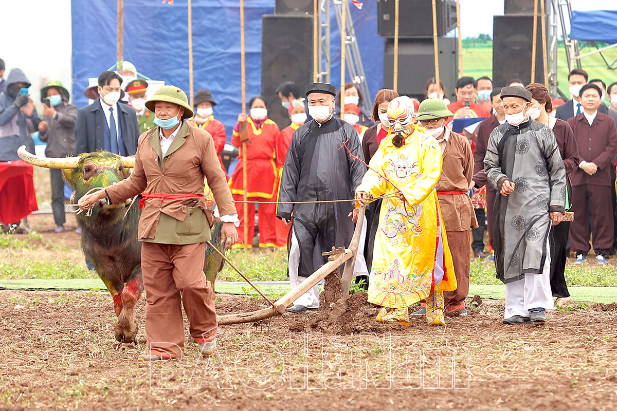 Theo nghi lễ một cụ cao niên ở Đọi Sơn đã được lựa chọn để làm lễ nhập linh khí của vua Lê Đại Hành. Sau nghi lễ quân vương đi cày, các đồng chí lãnh đạo Đảng, Nhà nước, Bộ, ngành, tỉnh đã xuống đồng cày noi theo đấng minh quân 1035 năm trước đã lật những sá cầy, đánh thức đất đai làm nên mùa màng bội thu, thực hiện thắng lợi những Nghị quyết về nông nghiệp, nông thôn, nông dân cũng như Chương trình mục tiêu Quốc gia xây dựng nông thôn mới, nông thôn mới kiểu mẫu trên địa bàn tỉnh.