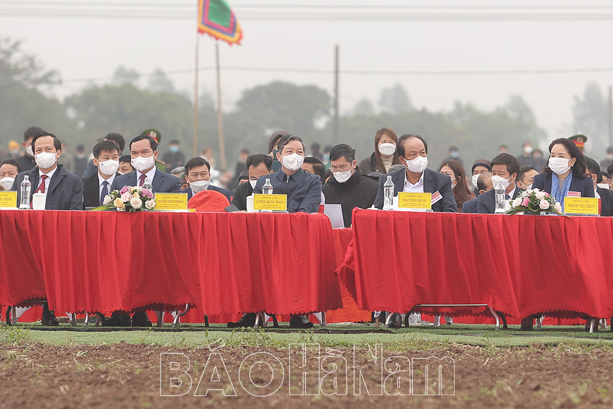 Sau nghi lễ đọc văn trình, các đồng chí lãnh đạo Đảng và Nhà nước; lãnh đạo các Bộ, ban, ngành Trung ương; lãnh đạo Tỉnh ủy, UBND tỉnh, lãnh đạo thị xã Duy Tiên và xã Tiên Sơn đã làm lễ dâng hương, bày tỏ lòng thành kính lên đàn tế Thần nông và linh vị vua Lê Đại Hành.