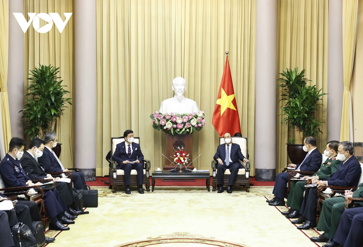Hoan nghênh Bộ trưởng Quốc phòng Nhật Bản chọn Việt Nam là quốc gia tới thăm đầu tiên trên cương vị Bộ trưởng Quốc phòng, Chủ tịch nước Nguyễn Xuân Phúc nhắc lại, trước đó, Thủ tướng Nhật Bản Suga Yoshihide cũng chọn Việt Nam là nước thăm đầu tiên sau khi nhậm chức, thể hiện Nhật Bản hết sức coi trọng mối quan hệ sâu sắc với Việt Nam.